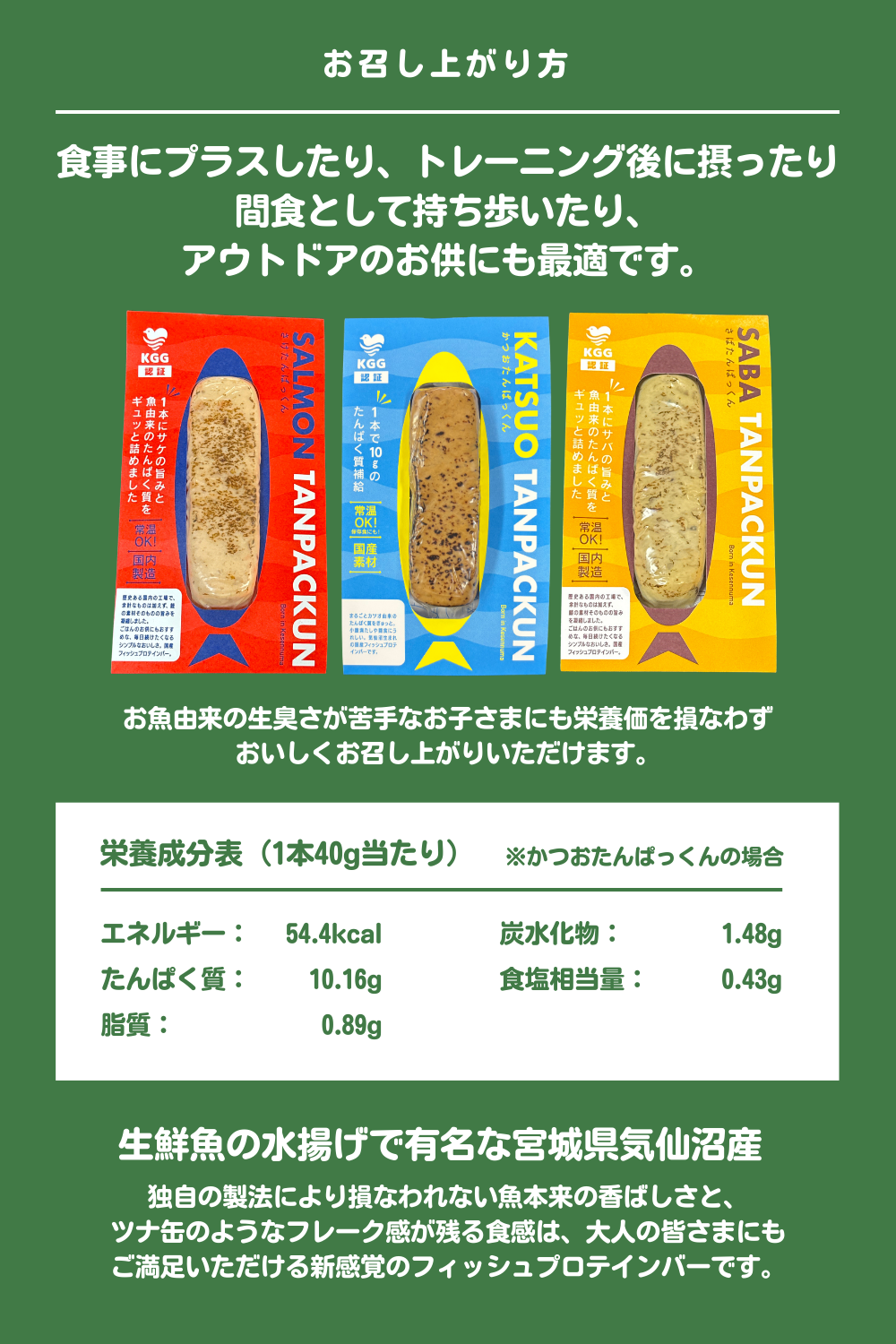 高タンパク・ヘルシーなのはもちろん、気仙沼の人情が詰まった”食べて心も健康につながる”プロテインバーです。